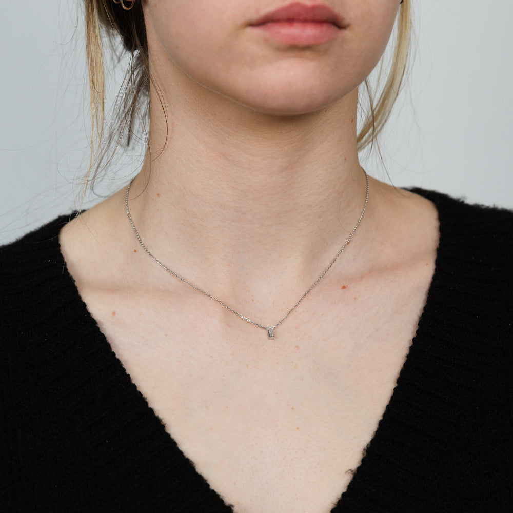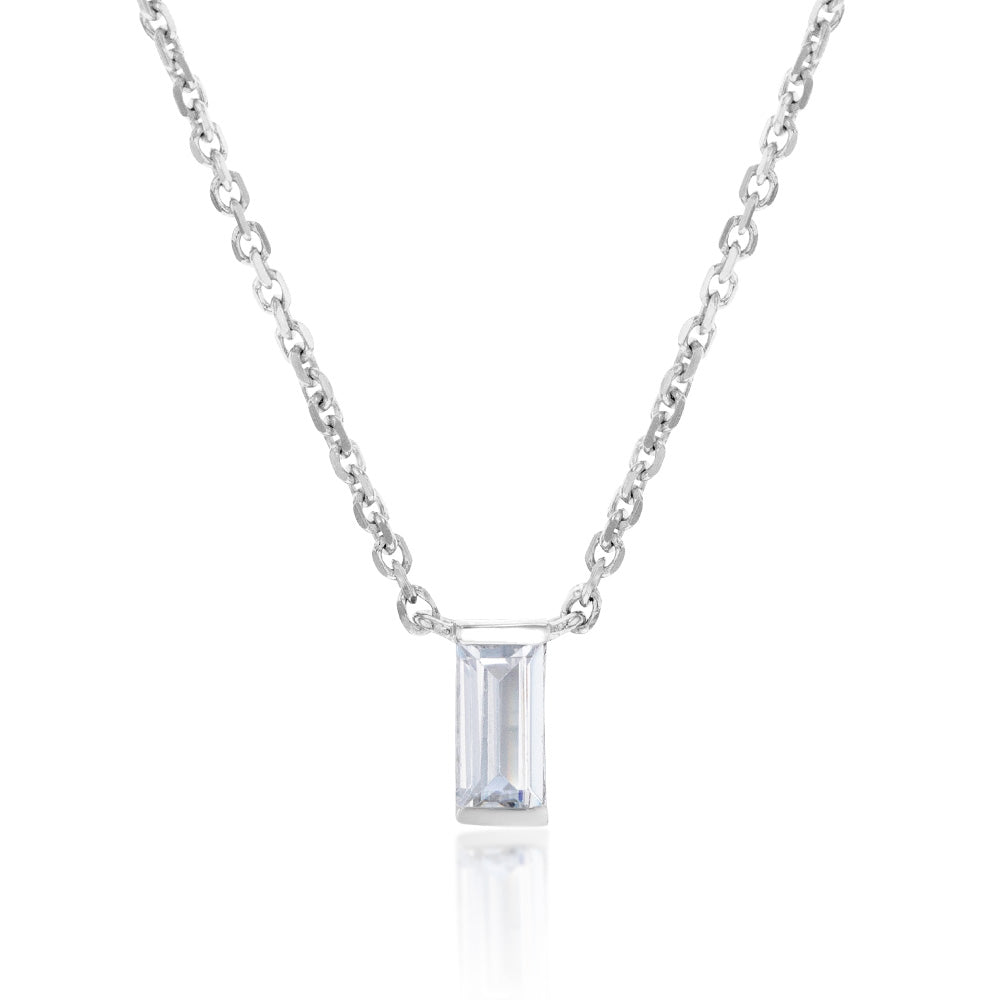 Sterling Silver Rhodium Plated White Cubic Zirconia Pendant on 40+5cm Chain
