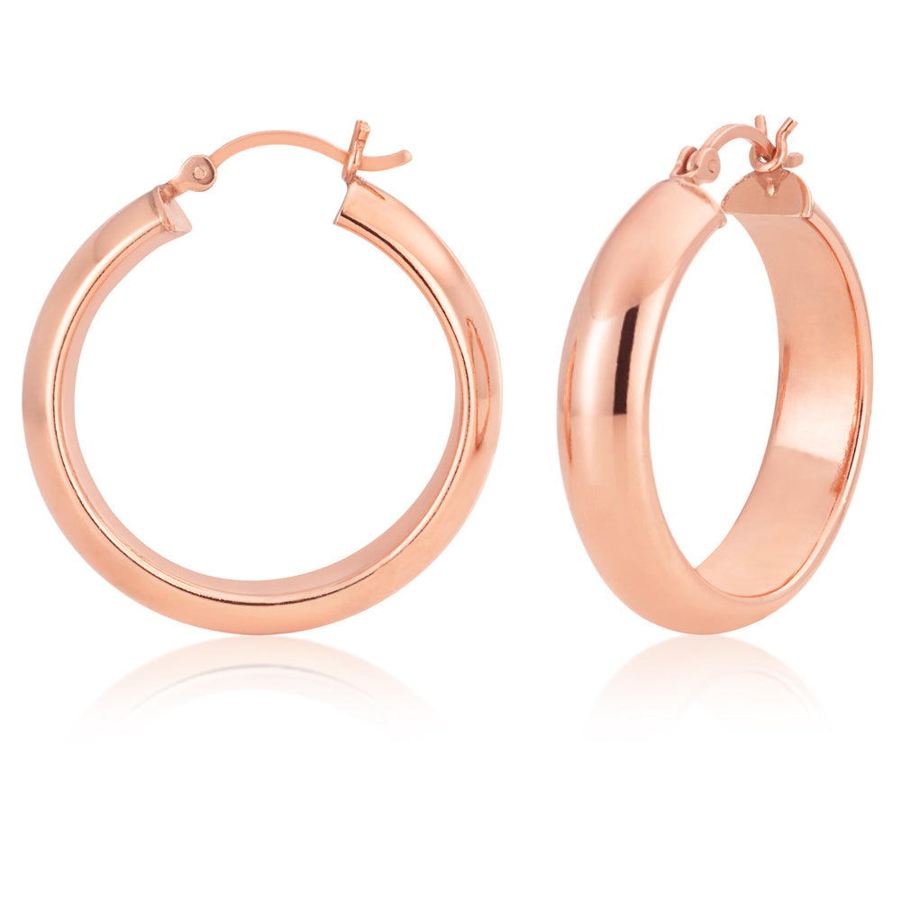 Sterling Silver Rose Gold Plated 30mm Half Round Hoop Earrings