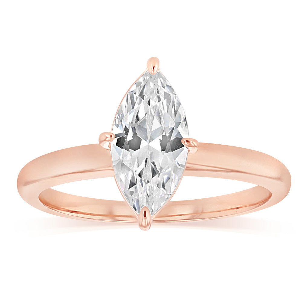 Sterling Silver Rose Gold Plated Cubic Zirconia Marquise Ring