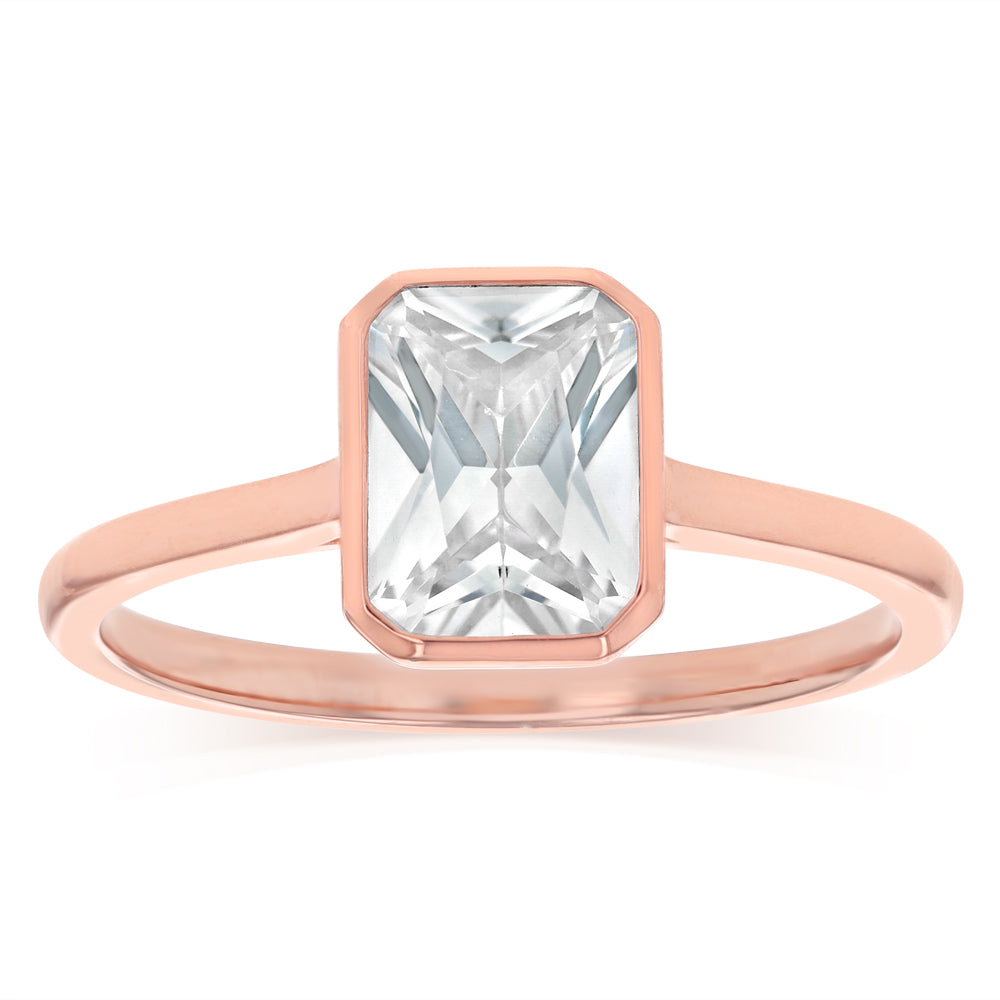Sterling Silver Rose Gold Plated CZ Cushion Cut Ring
