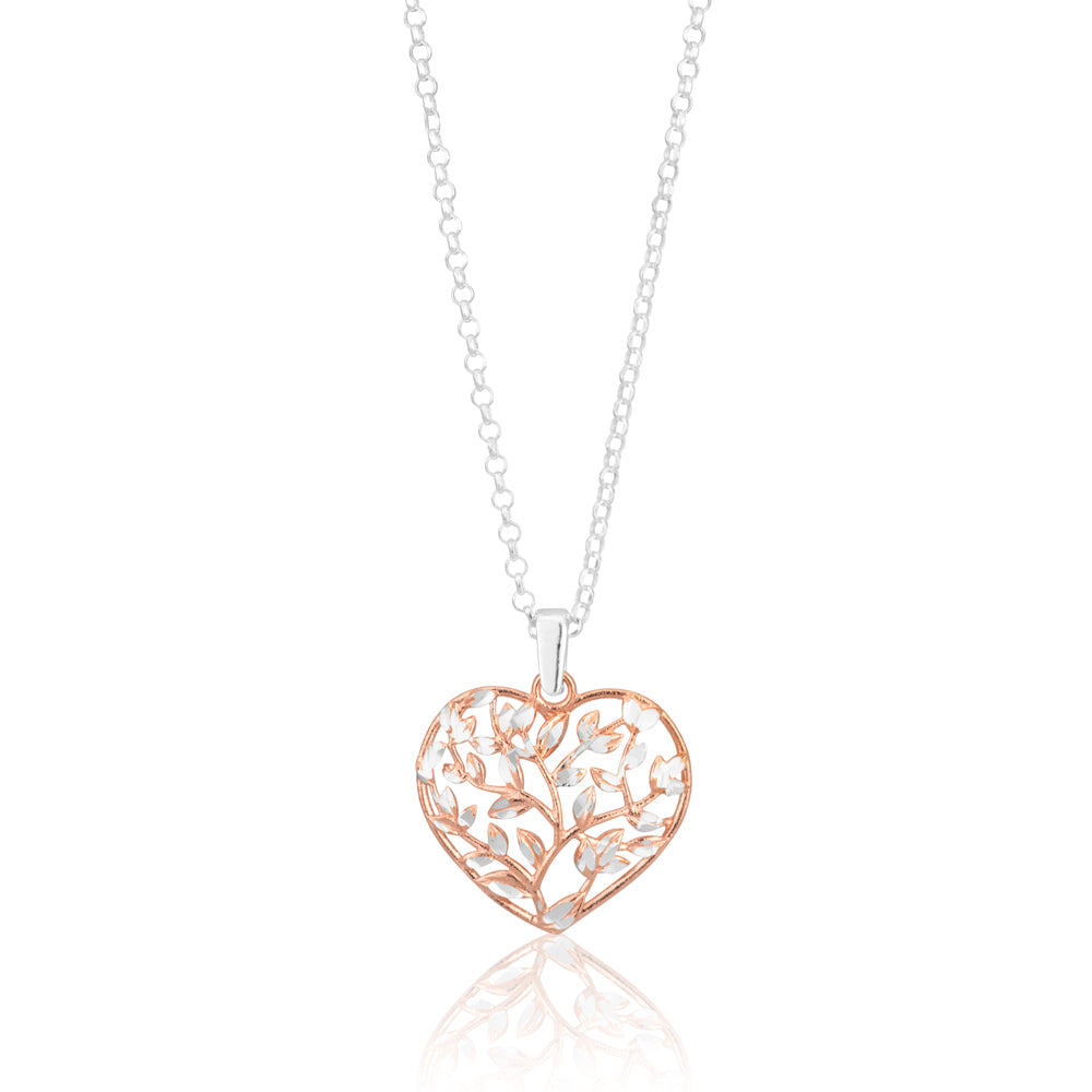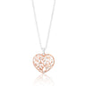 Sterling Silver Rose Plated 2 Tone Dicut Heart Pendant on 42cm Chain