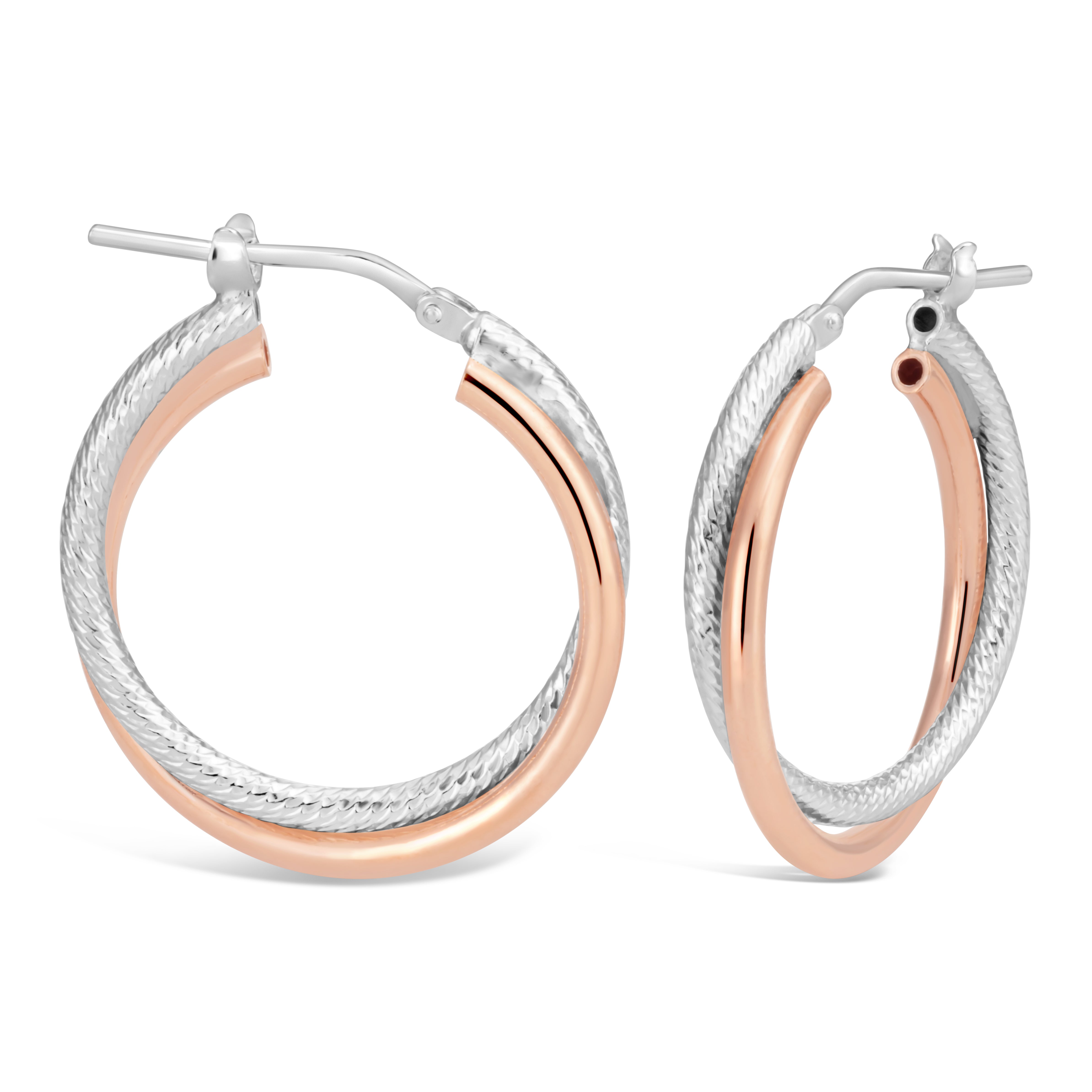 Sterling Silver Rose Plated Double Hoop With Twist 20mm Earring