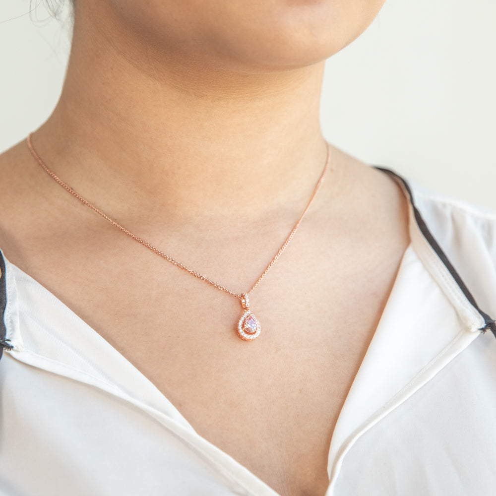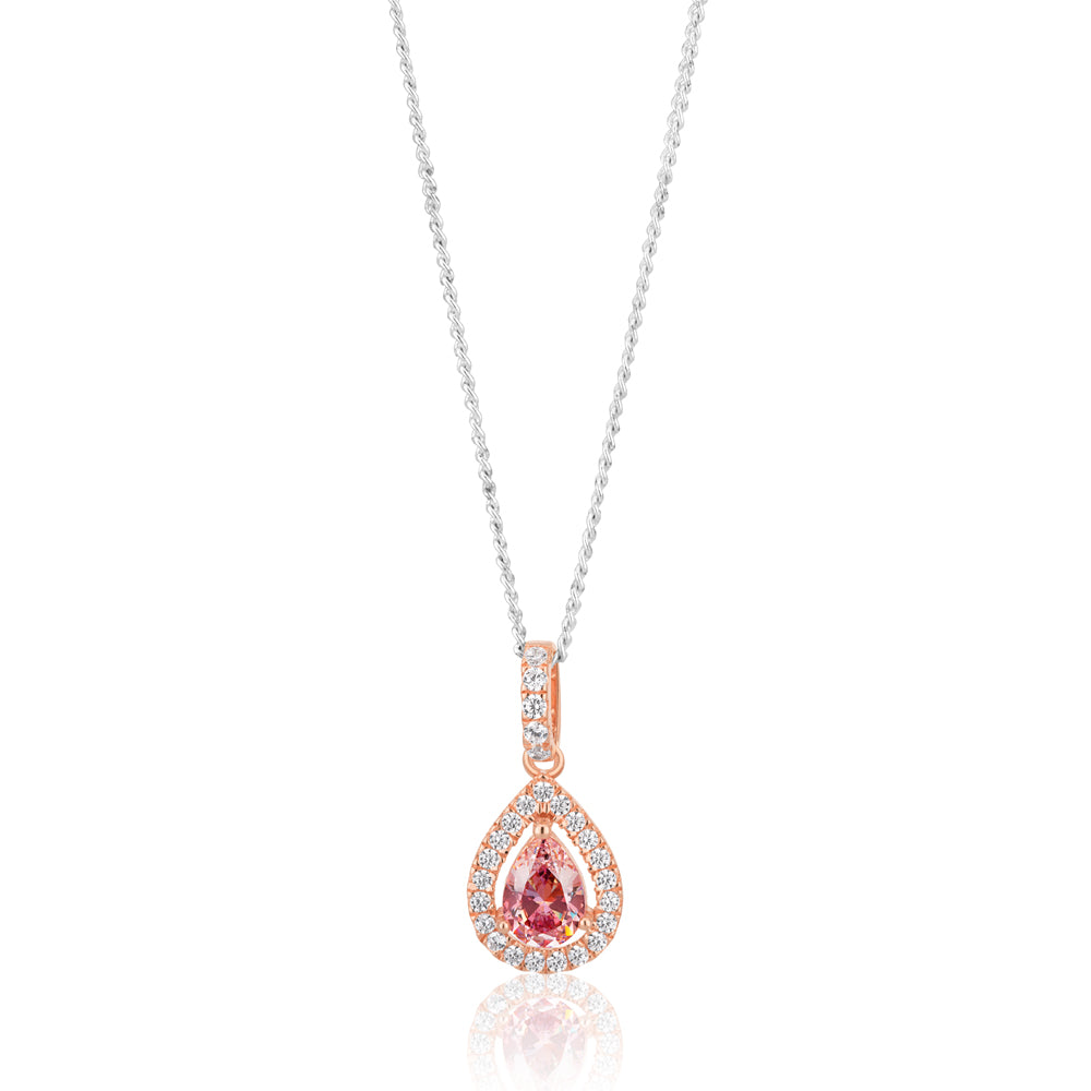 Sterling Silver Rose Plated Zirconia Pear Pendant