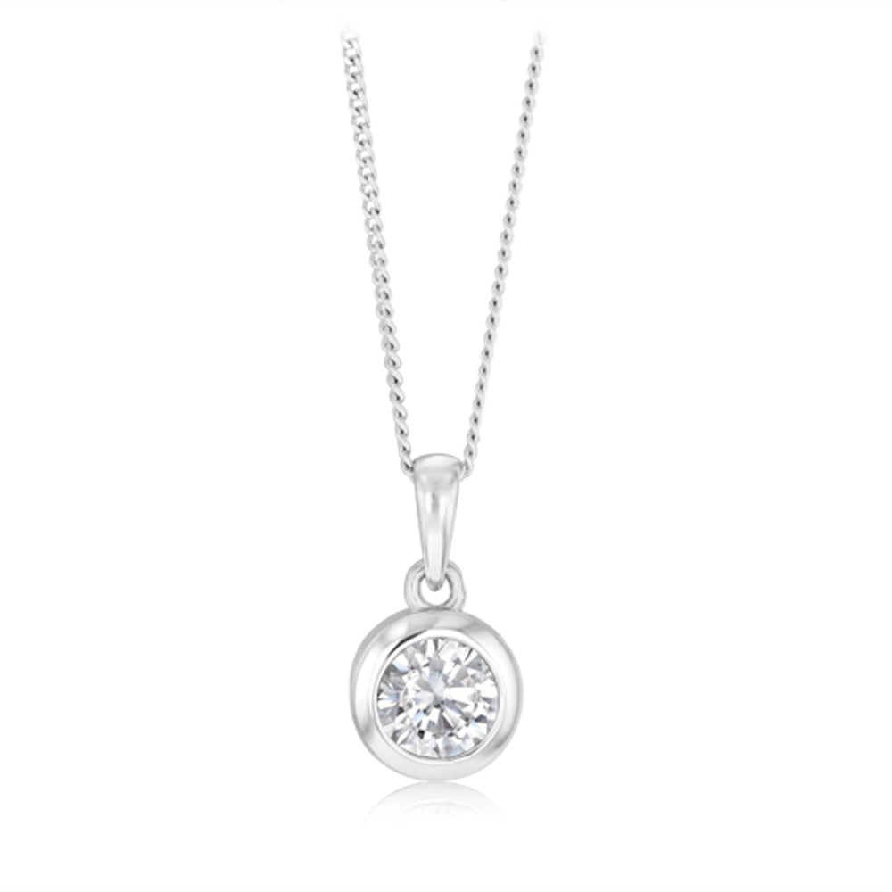 Sterling Silver Round Cubic Zirconia Bezel Set Pendant