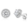 Sterling Silver Round White Cubic Zirconia Halo Stud Earrings