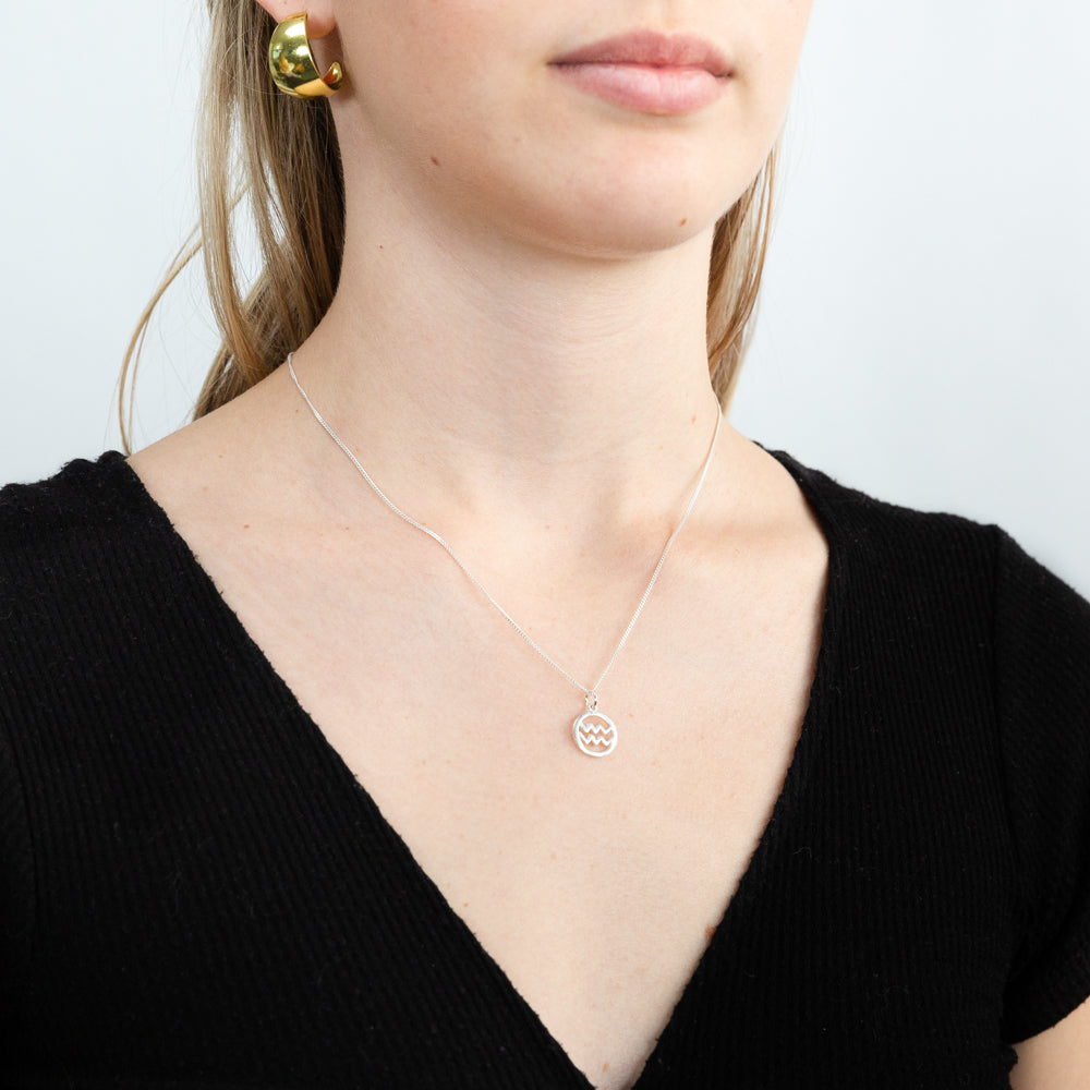 Sterling Silver Round Zodiac/Star Sign Aquarius Pendant