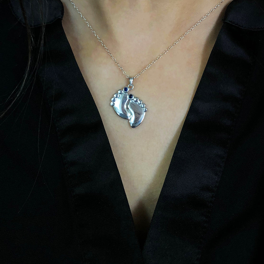 Sterling Silver Sapphire Babyfeet Pendant with chain
