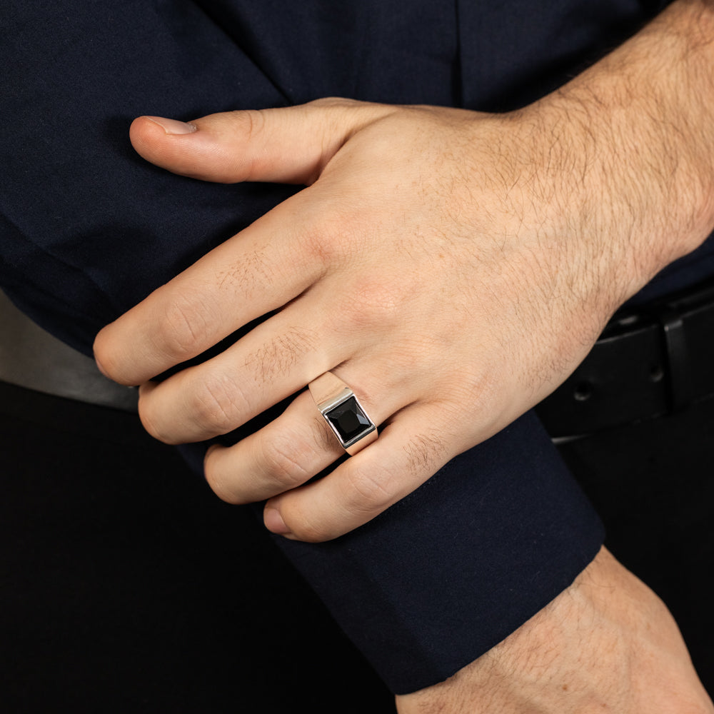 Sterling Silver Square Black Zirconia Gents Ring