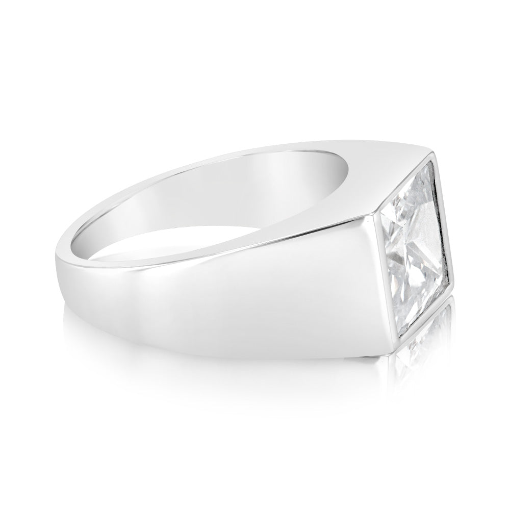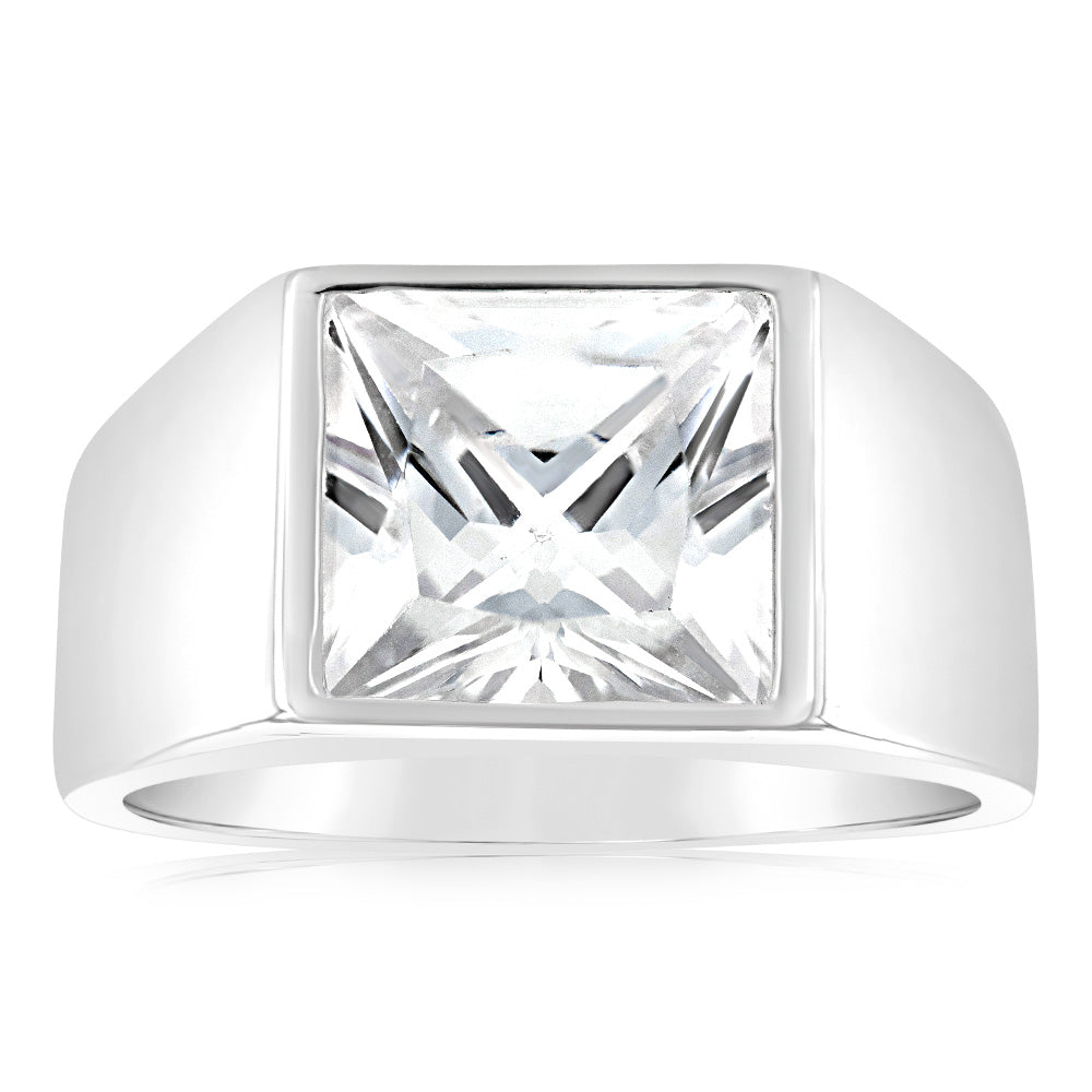 Sterling Silver Square White Zirconia Gents Ring
