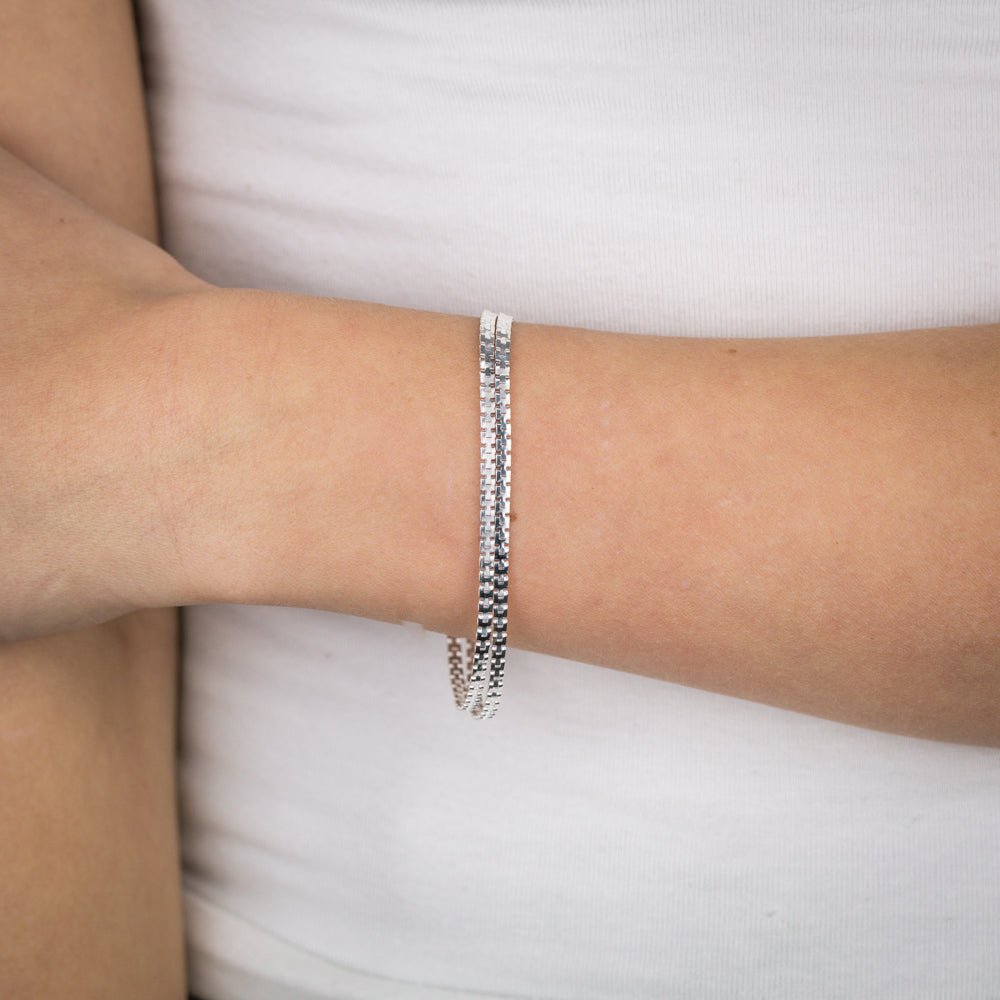 Sterling Silver Stamped Fancy Double Strand 19cm Bracelet