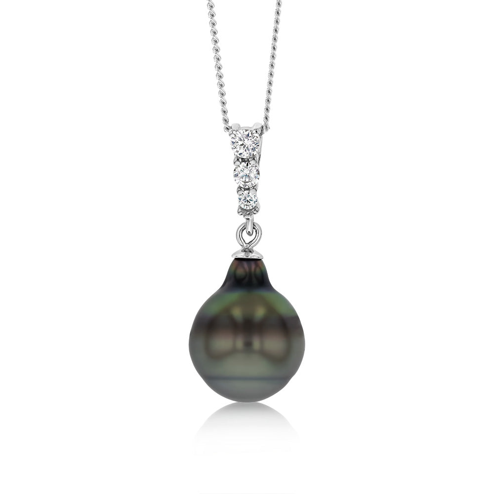Sterling Silver Tahitian Pearl & Zirconia Pendant