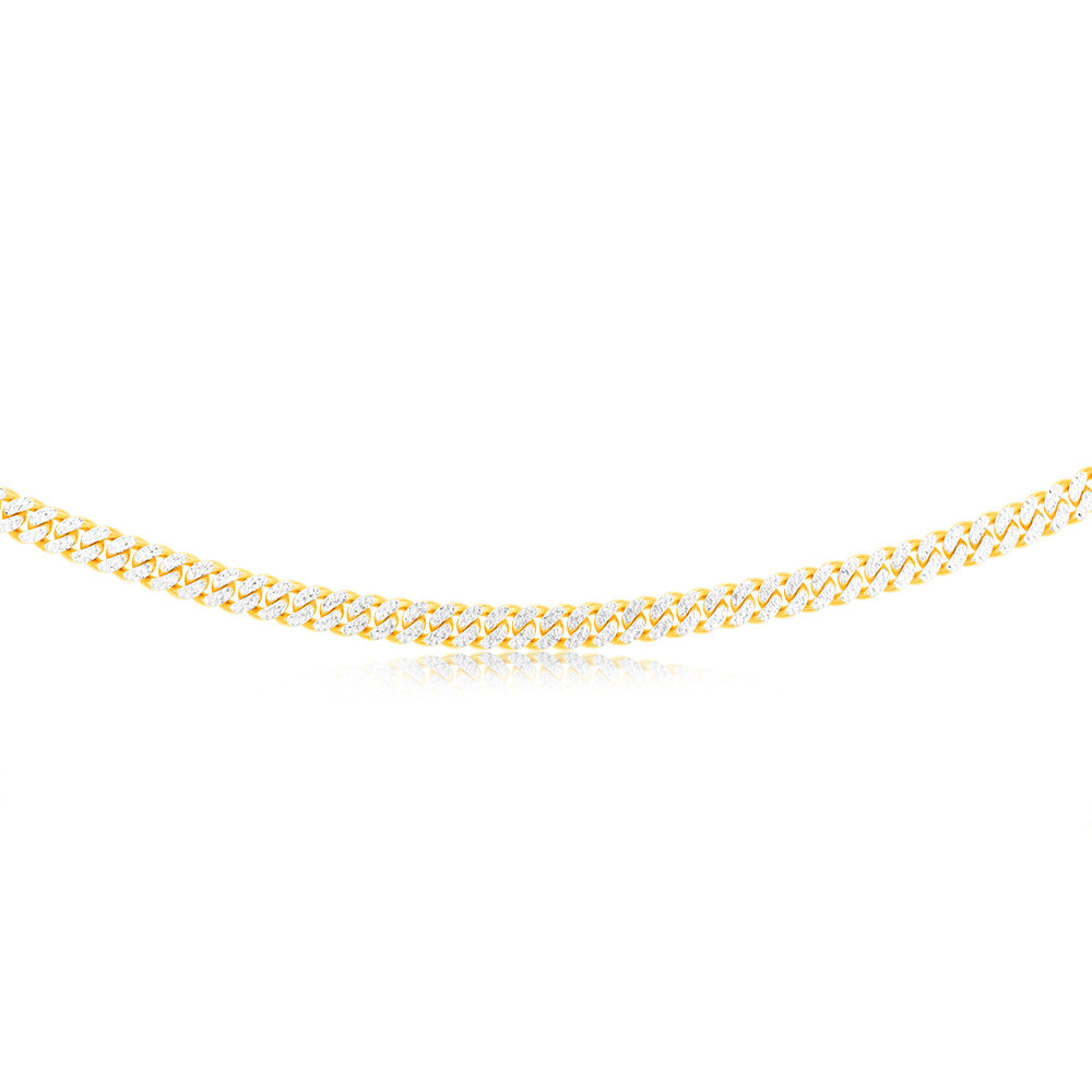 Sterling Silver Two Tone Pave Curb 180 Gauge 50cm Chain