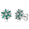 Sterling Silver White And Green Cubic Zirconia Fancy Flower Stud Earrings