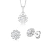 Sterling Silver White Cubic Zirconia Flower Pendant And Stud Earrings Set