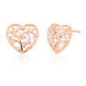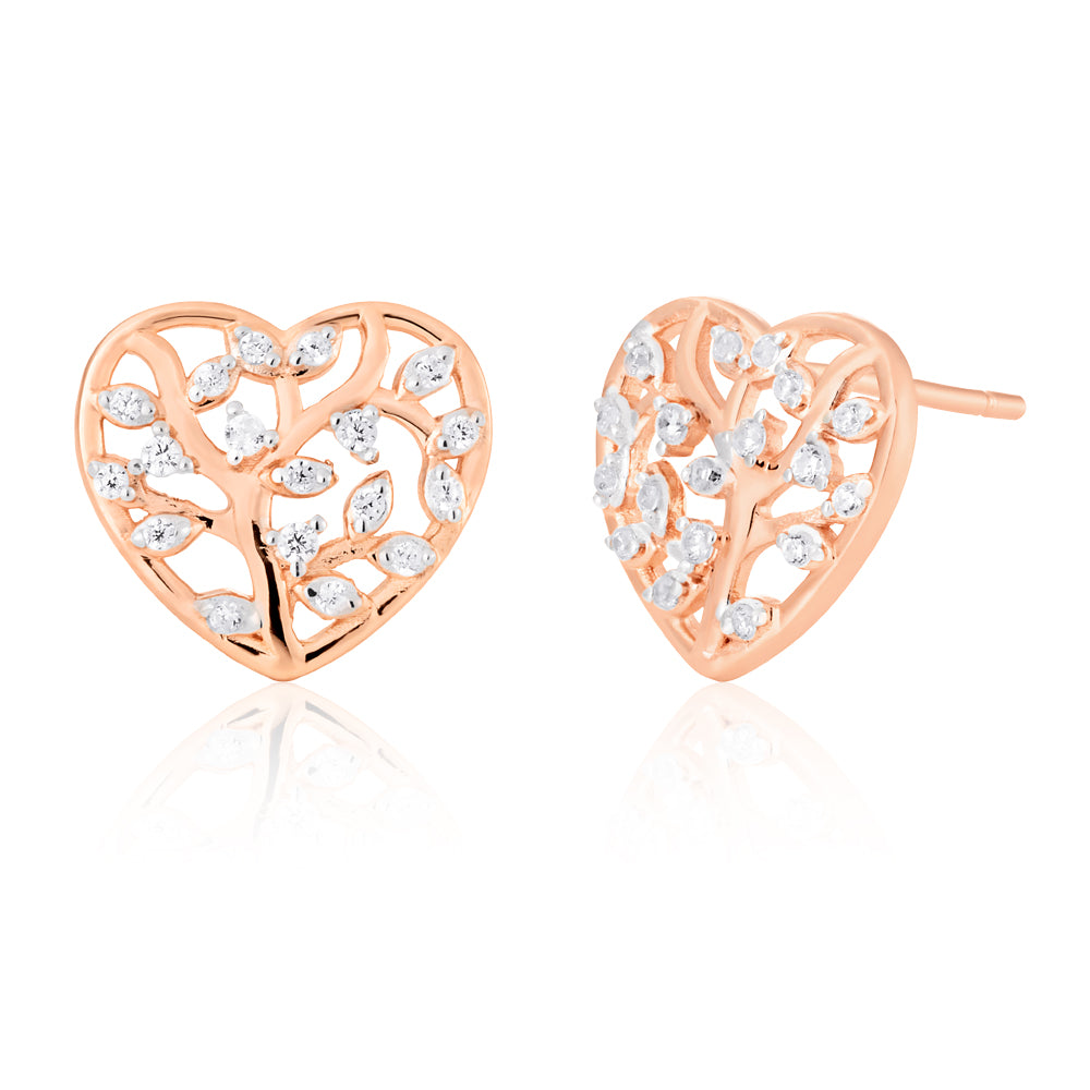 Sterling Silver with Rose Gold Plated Zirconia Tree Of Life Heart Stud Earrings