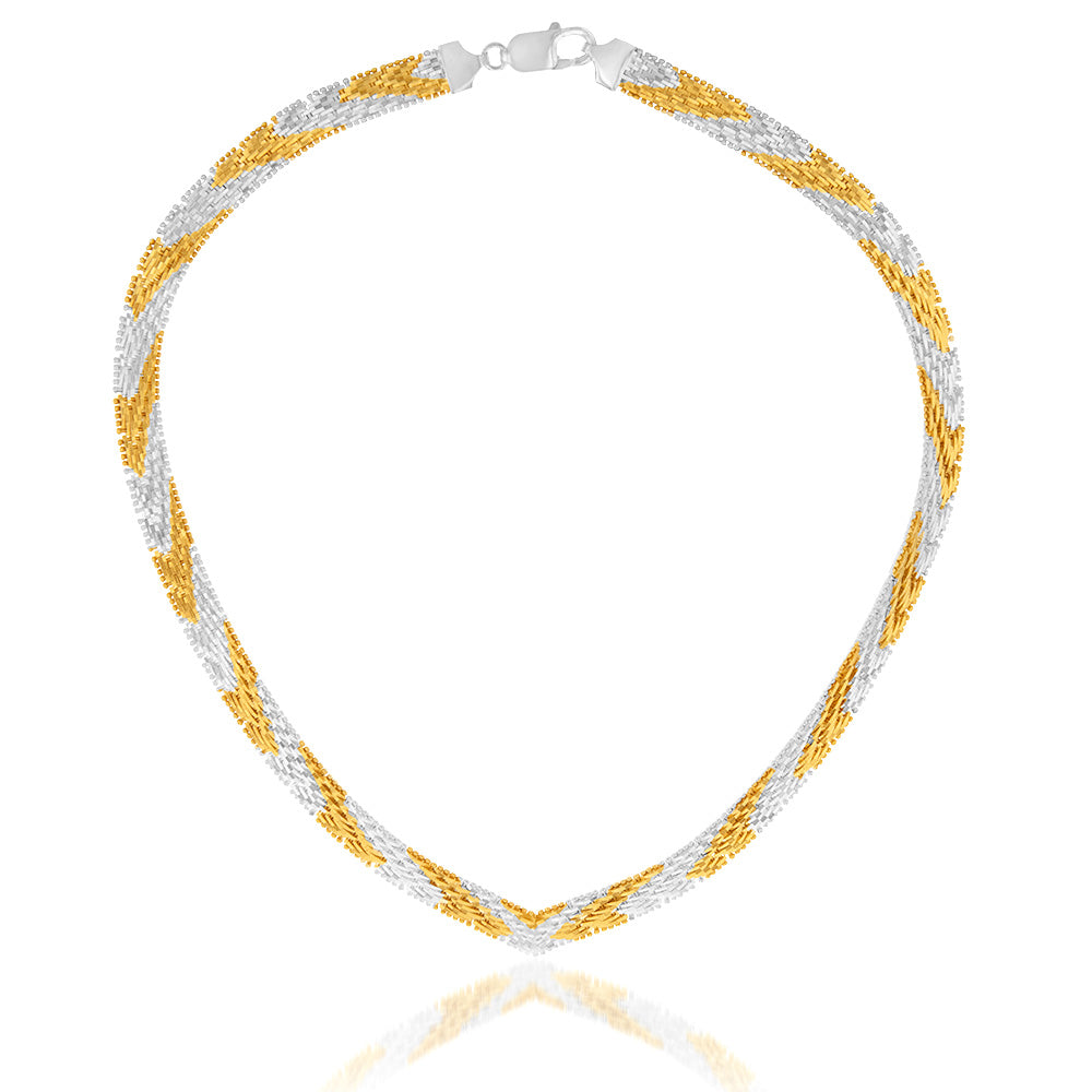 Sterling Silver Yellow And White Two Tone V 40.5cm Chain