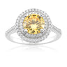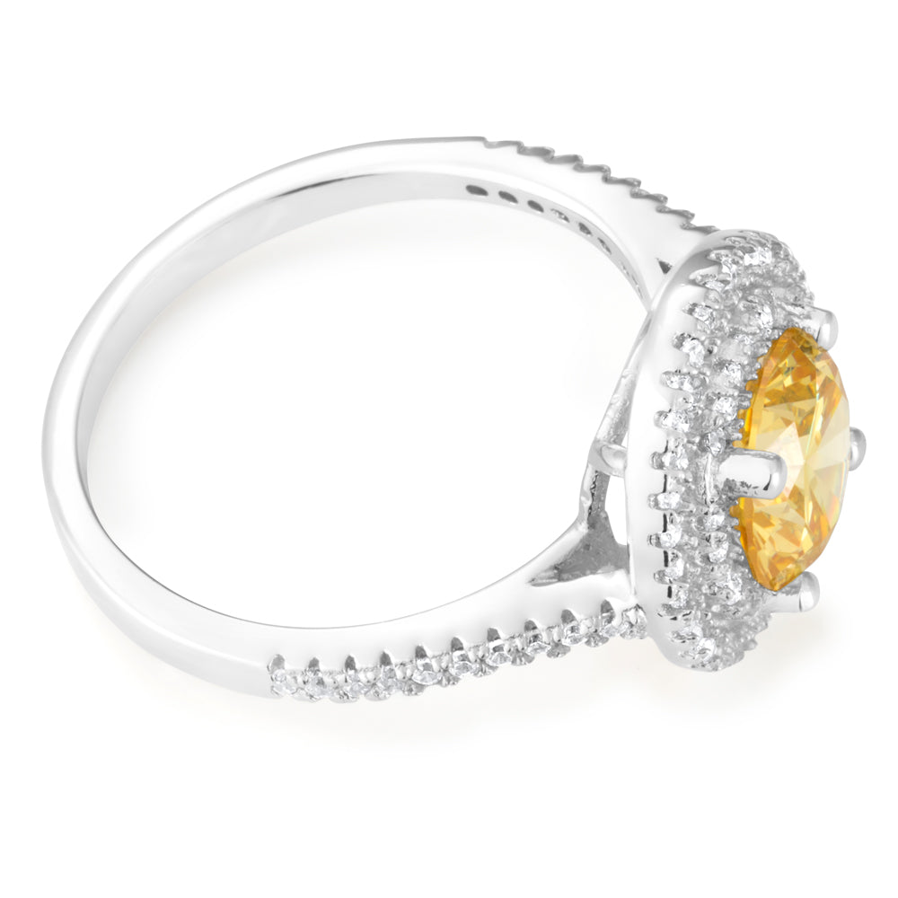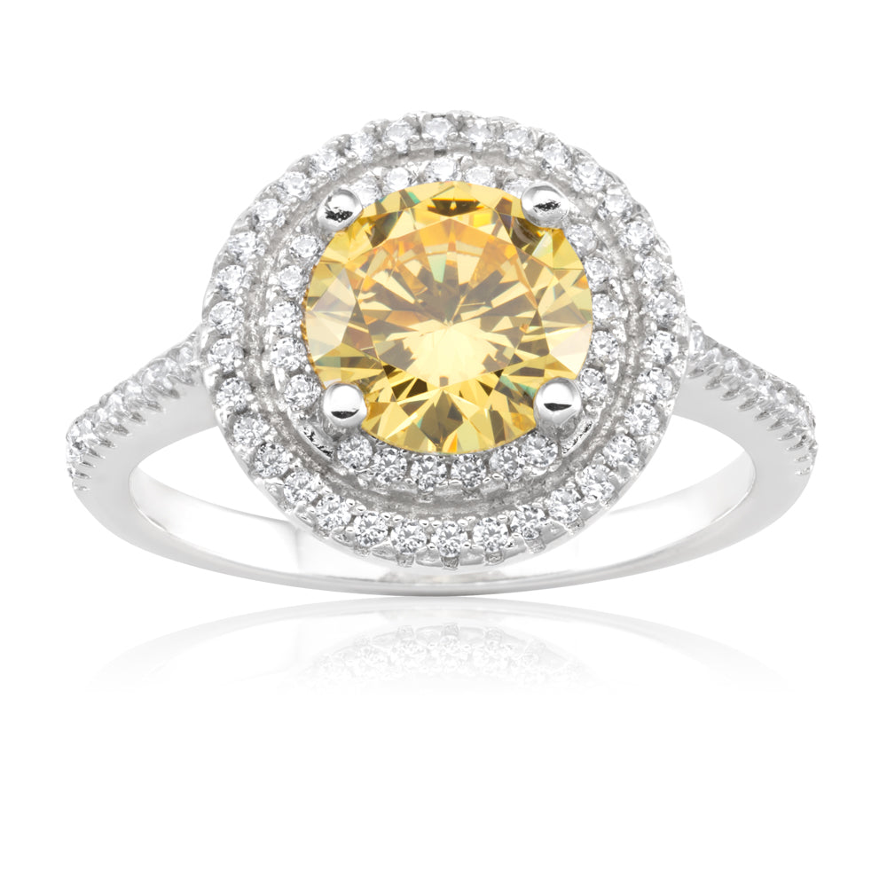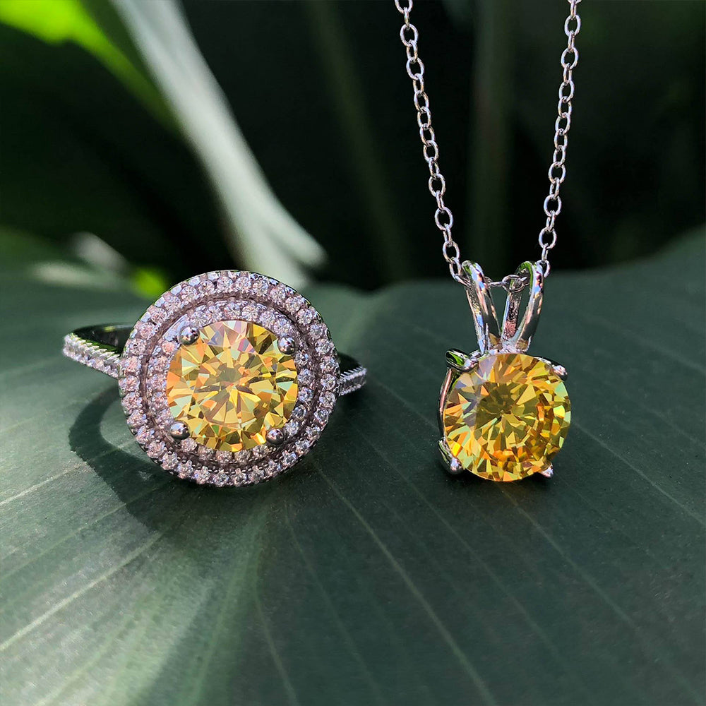 Sterling Silver Yellow Cubic Zirconia Solitaire Pendant Chain and Halo Ring Set