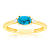 Sterling Silver Yellow Gold Plated Created Oval Green Turquoise And Zirconia Ring