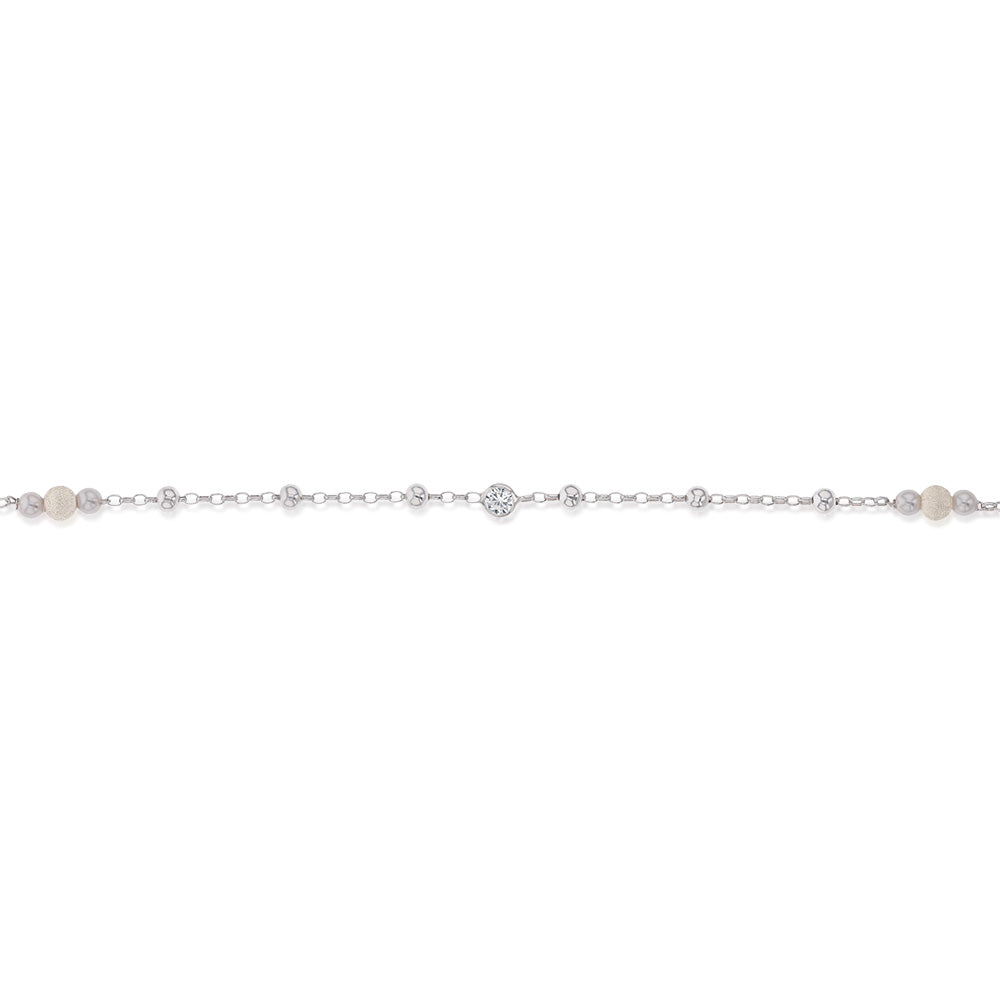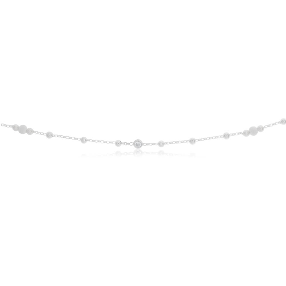 Sterling Silver Zirconia and Plain and Stardust Ball 26cm Anklet