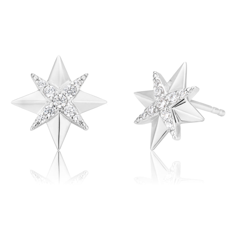 Sterling Silver Zirconia Crossover Star Stud Earrings