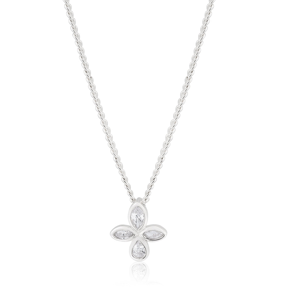 Simple, yet sparkly. A little goes a long way with this sterling silver pear and marquise pendant.