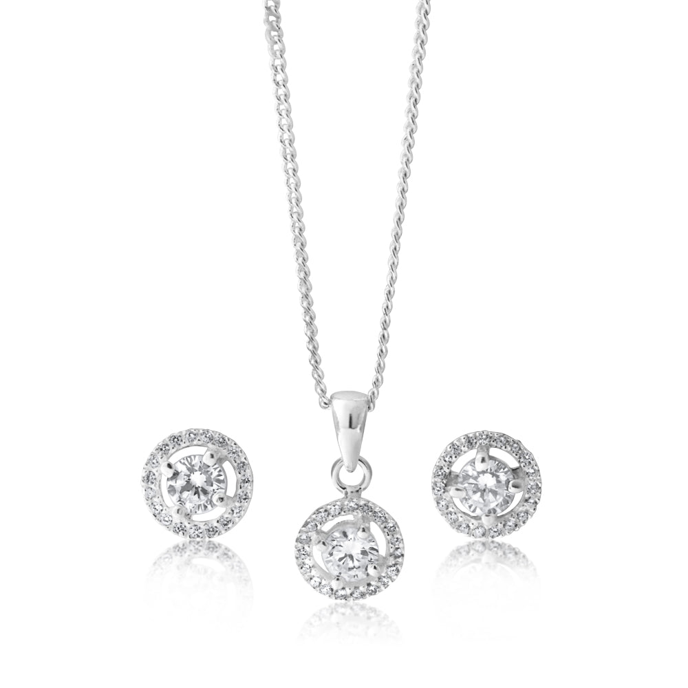 Sterling Silver Zirconia Round Pendant and Stud Earring Set - chain not included