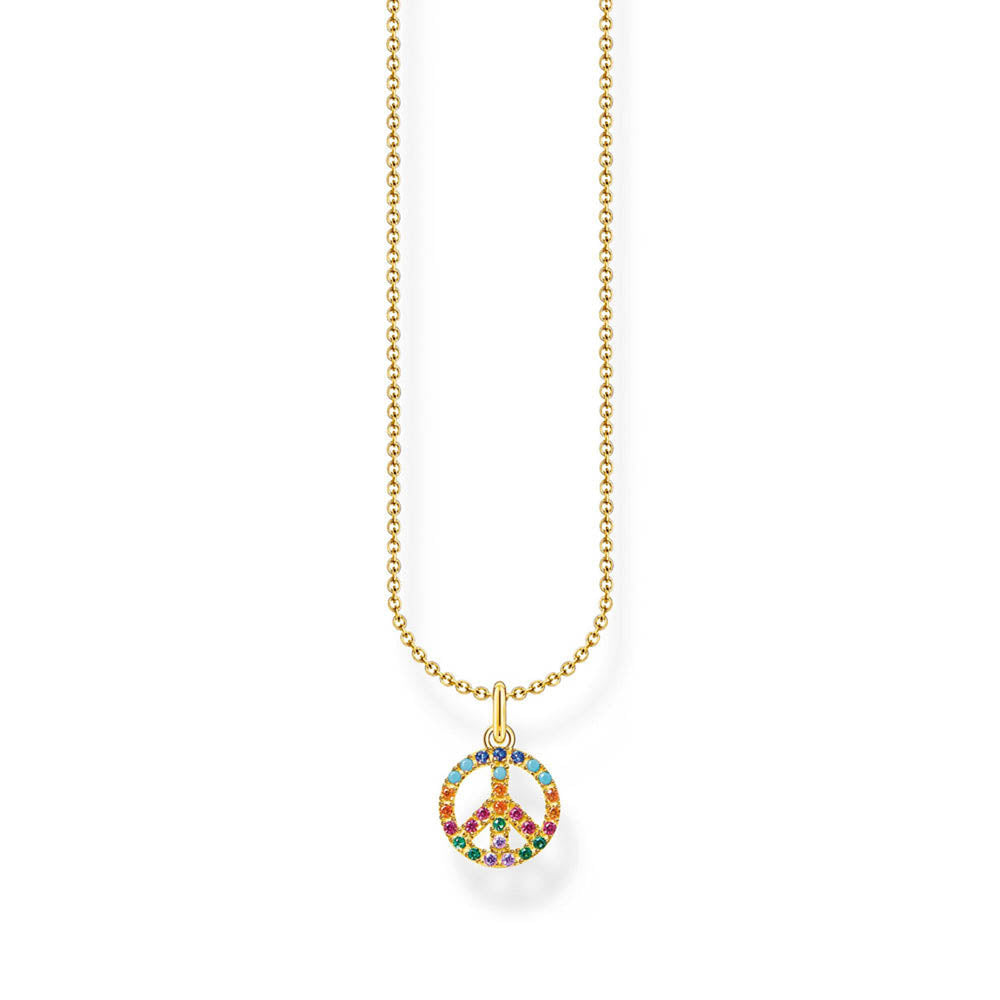 Thomas Sabo Sterling Silver Gold Plated Charm Club Rainbow Peace Pendant On Chain