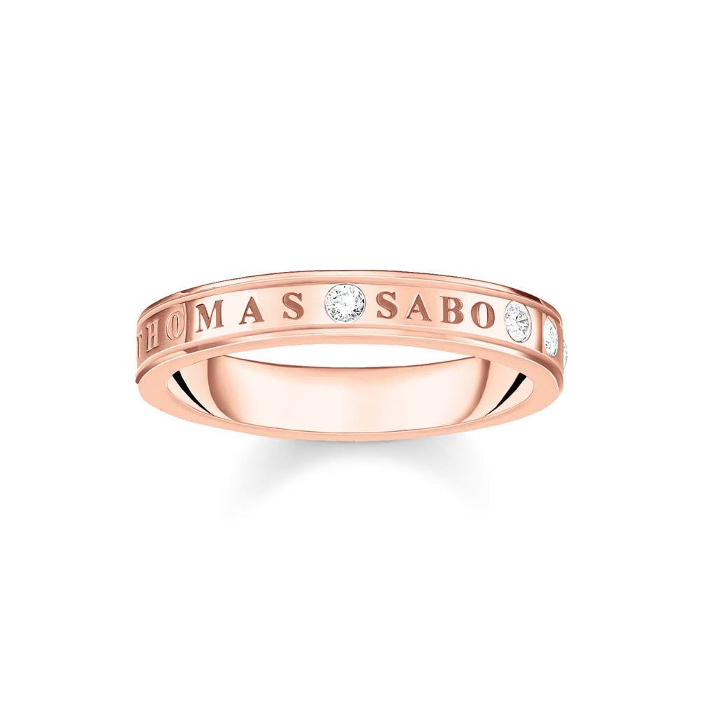 Thomas Sabo Sterling Silver Rose Gold Plated Sparkling Circle T S Since 1984 Ring