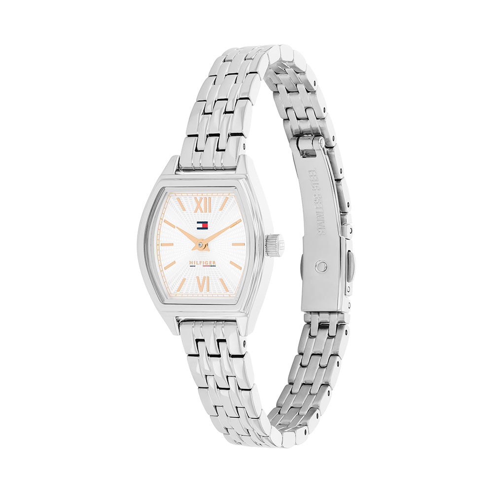 - Quartz Movement - 21.5 x 22mm Case Size - Stainless Steel Case and Bracelet