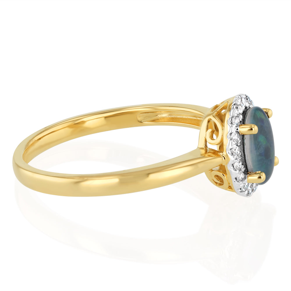 Triplet Opal Diamond Ring in 9ct Yellow Gold