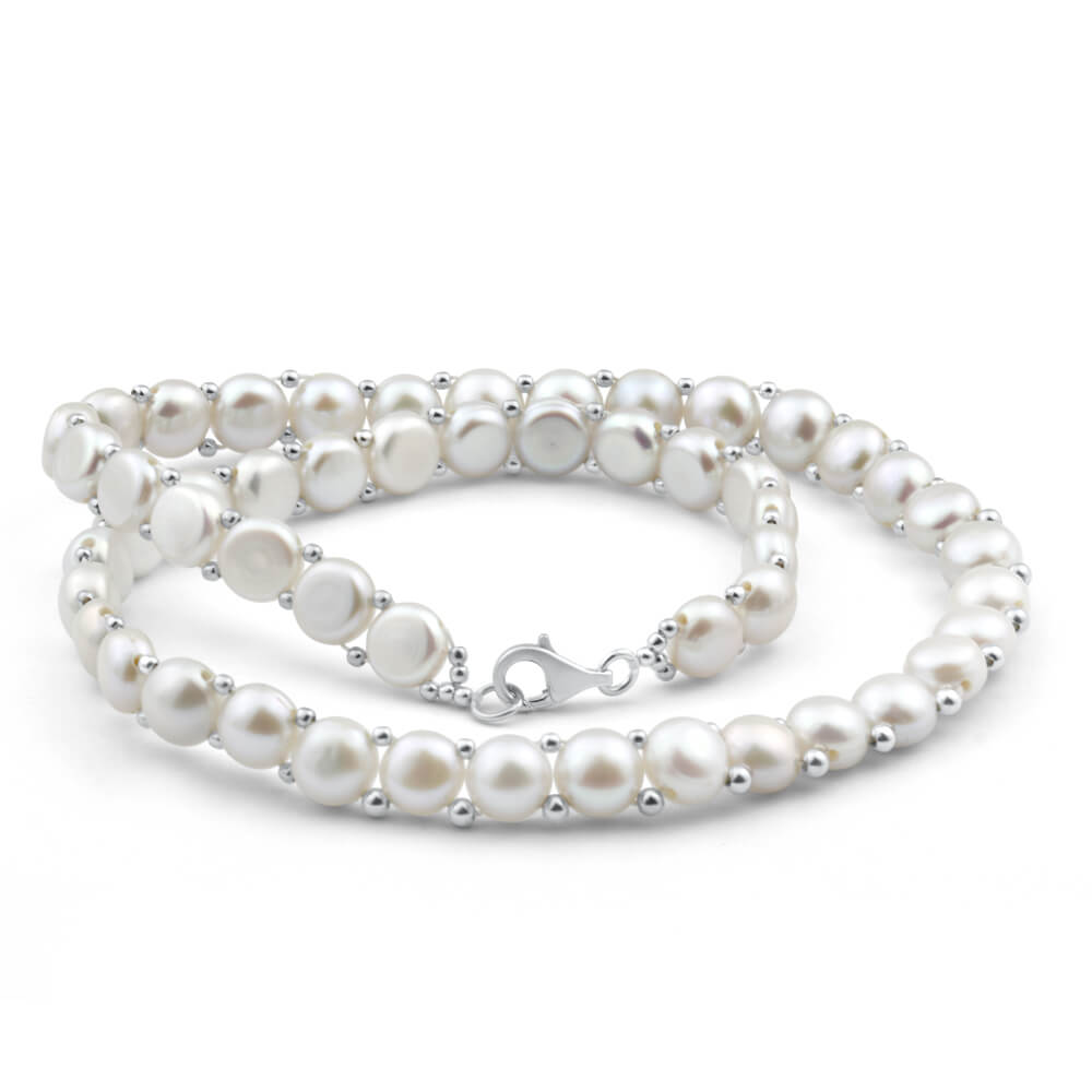 White Freshwater Flat Pearl 43cm Necklace with Sterling Silver Clasp