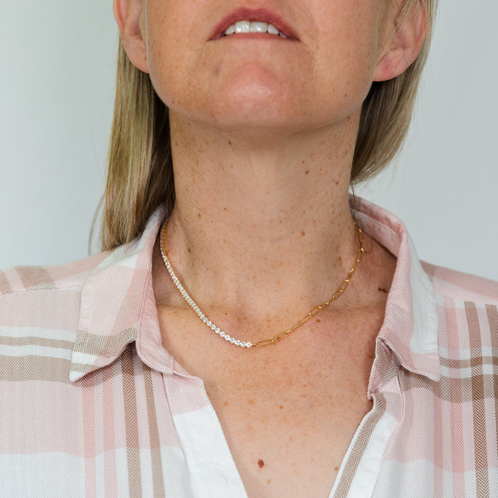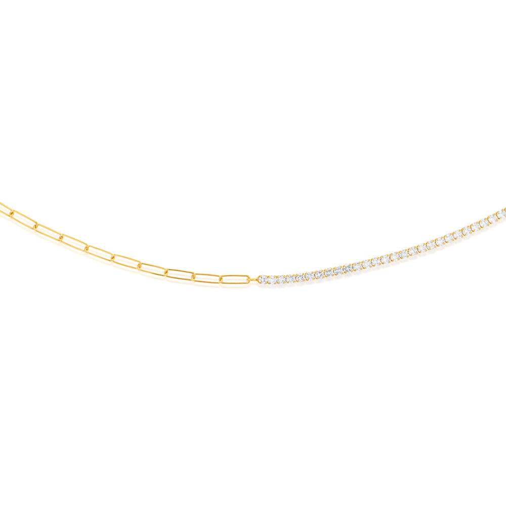 Yellow Gold Plated Sterling Silver CZ String And Paperclip Half N Half 45cm Chain